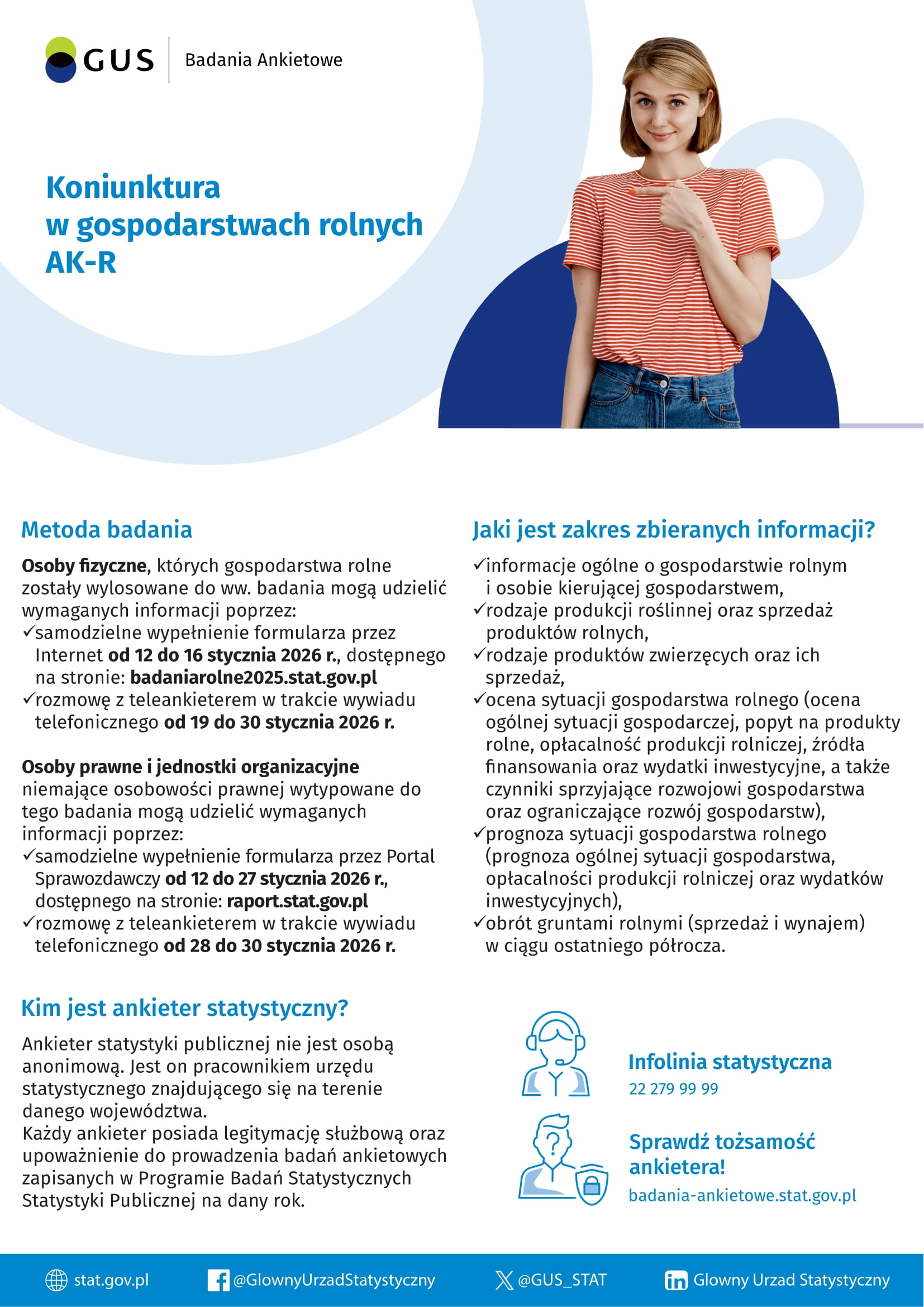 - wywiad telefoniczny realizowany przez ankietera statystycznego w dniach od 19 do 30 stycznia 2026 r.Osoby prawne i jednostki organizacyjne niemające osobowości prawnej wytypowane do badania mogą udzielić wymaganych informacji poprzez