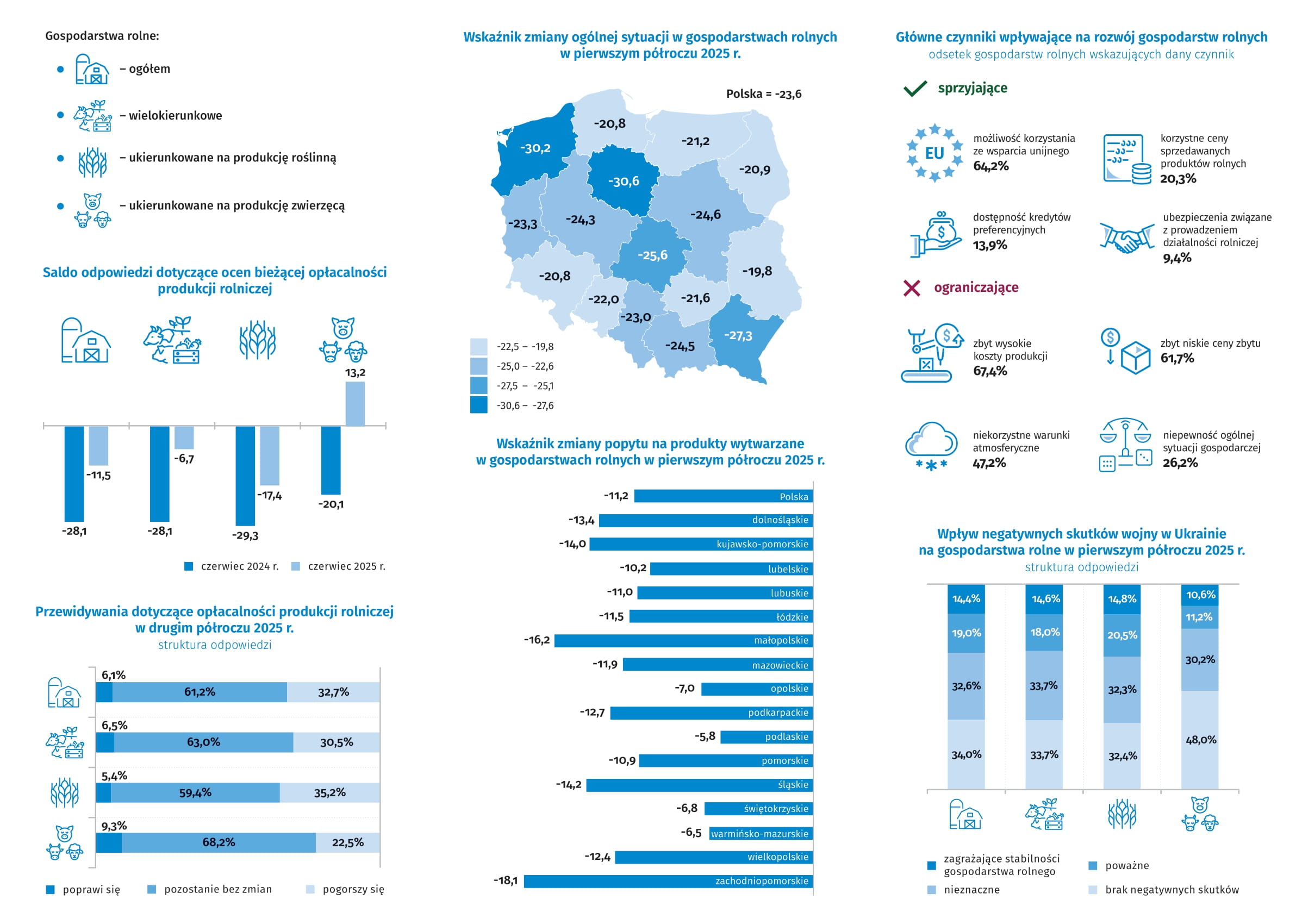 - zbieramy subiektywne oceny rolników dotyczących aktualnej i przewidywanej ogólnej sytuacji gospodarstw rolnych, a także opłacalności produkcji rolnej i popytu,