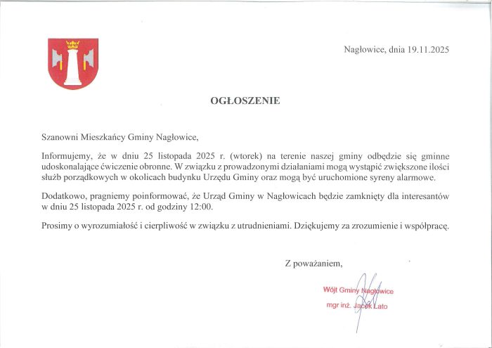 które odbędzie się w dniu 26.11.2025 roku o godz 9:00 Gminnym Ośrodku Kultury w Nagłowicach...