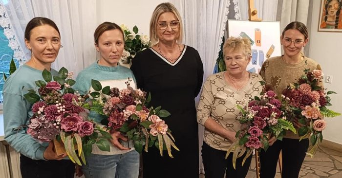 W ramach bibliotecznego święta zorganizowano wyjątkowe warsztaty florystyczne pod hasłem „Do dzieła – Twórz piękno w Bibliotece”, skierowane do czytelniczek oraz mieszkanek gminy Nagłowice. Spotkanie odbyło się w klimatycznych wnętrzach Dworku Mikołaja Reja a uczestniczki wydarzenia mogły nie tylko spędzić miły, twórczy wieczór, ale również nauczyć się podstaw sztuki układania kwiatów. Panie zostały zaopatrzone we wszystkie potrzebne materiały – dzięki czemu mogły w pełni oddać się tworzeniu własnych, niepowtarzalnych kompozycji. Warsztaty poprowadziła Lidia Titow, dyrektor Samorządowego Centrum Bibliotek i Kultury „Dworek Mikołaja Reja” w Nagłowicach, która wprowadziła uczestniczki w tajniki sztuki florystycznej. Omówione zostały zasady komponowania bukietów i stroików, dobierania kolorów oraz wykorzystywania różnych materiałów w tworzeniu harmonijnych aranżacji. Podczas zajęć panie mogły praktycznie zastosować zdobytą wiedzę, tworząc własne, oryginalne kompozycje kwiatowe, które zabrały ze sobą na pamiątkę tego wieczoru.
