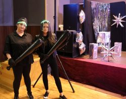 Przybyłe panie przywitała dyrektor Gminnego Ośrodka Kultury – Lidia Titow jednocześnie zapewniając, że wieczór zapowiada się obiecująco, pełen atrakcji i miłych niespodzianek. Jedną z nich był cieszący się dużym zainteresowaniem „Open Bar”, w którym uczestniczki mogły spróbować smacznych i różnorodnych napojów chłodzących. Pomysł na taką atrakcję spotkał się z bardzo pozytywnym odbiorem i był doskonałym uzupełnieniem całej imprezy. Nie zabrakło także elementów sprzyjających integracji i dobrej zabawie. Dużym powodzeniem cieszyła się „Foto budka”, która przez cały wieczór przyciągała panie chętne do uwiecznienia wspólnych chwil. Kolorowe gadżety, spontaniczne pozy oraz nagrywane filmiki sprawiły, że powstało wiele radosnych pamiątek, do których z pewnością uczestniczki będą chętnie wracać. Na gościnie czekały także suto zastawione stoły, pełne różnorodnych potraw i przekąsek. Nie zabrakło również słodkiego akcentu – wójt gminy Nagłowice Jacek Lato przygotował dla pań wyjątkową niespodziankę – tort z okazji ich święta. Ten symboliczny gest spotkał się z ciepłym przyjęciem i był wyrazem szacunku oraz wdzięczności. O oprawę muzyczną uroczystości zadbał Jerzy Szczepański, który grał i śpiewał znane i lubiane utwory. Jego występ szybko porwał panie do tańca a dobra energia i uśmiechy towarzyszyły uczestniczkom przez cały wieczór. Muzyka na żywo wprowadziła wszystkich w wyśmienity nastrój i była jednym z najważniejszych elementów budujących klimat wydarzenia. Miłym akcentem były również urocze upominki, które przybyłe panie otrzymały od właścicielki salonu urody „Hej, Piękna” w Nagłowicach – Olgi Latos. Ten gest sprawił uczestniczkom wiele radości i stanowił dodatkowe podkreślenie wyjątkowego charakteru wydarzenia. Tradycyjnie już, jednym z najbardziej wyczekiwanych momentów wieczoru była humorystyczna scenka teatralna zaprezentowana na scenie GOK. W tym roku jej tematyka nawiązywała do kultowego klimatu „Seksmisji”, co wywołało salwy śmiechu i zostało nagrodzone gromkimi brawami.