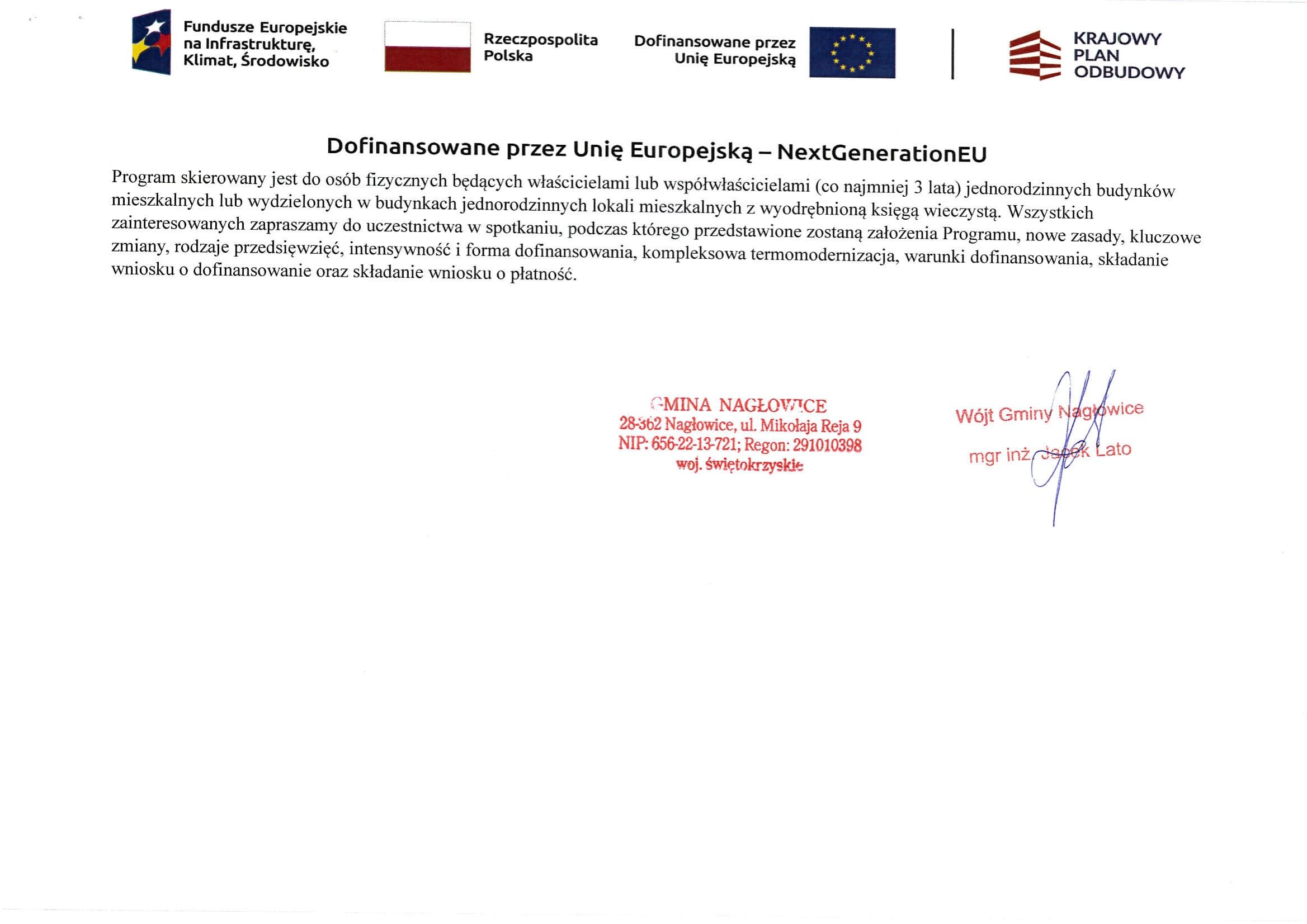 Wójt Gminy Nagłowice zaprasza wszystkich mieszkańców Gminy zainteresowanych dofinansowaniem
